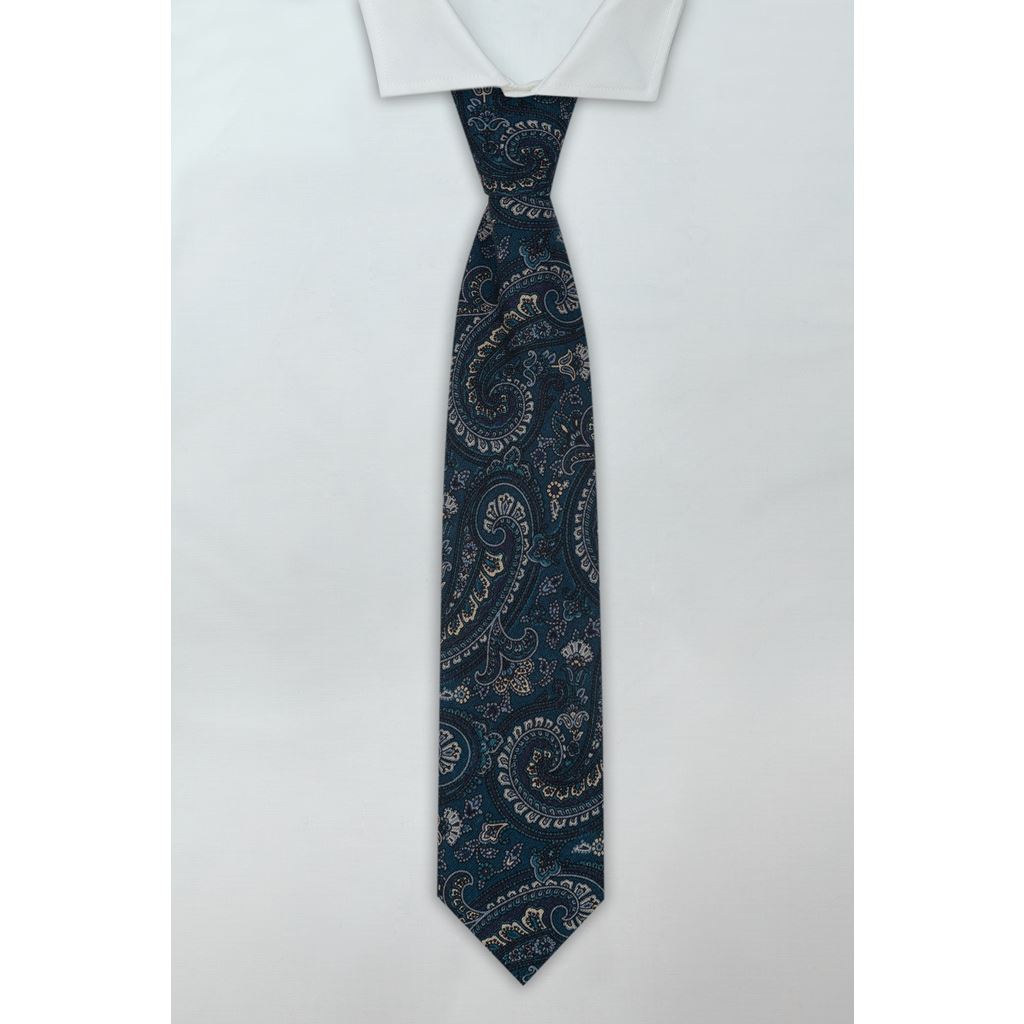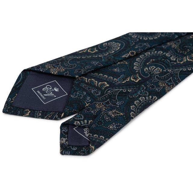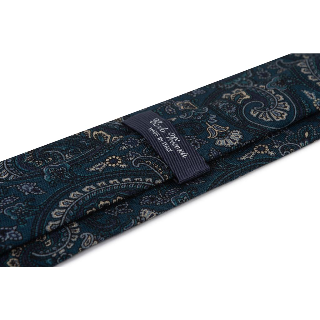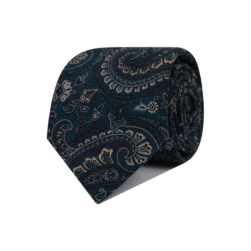 Corbata de lana azul petroleo con dibujo Cachemire