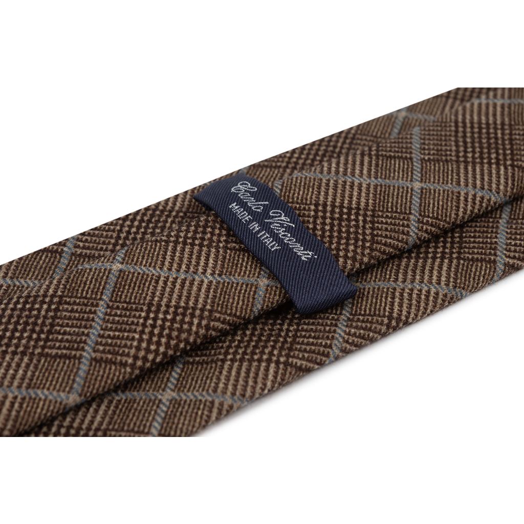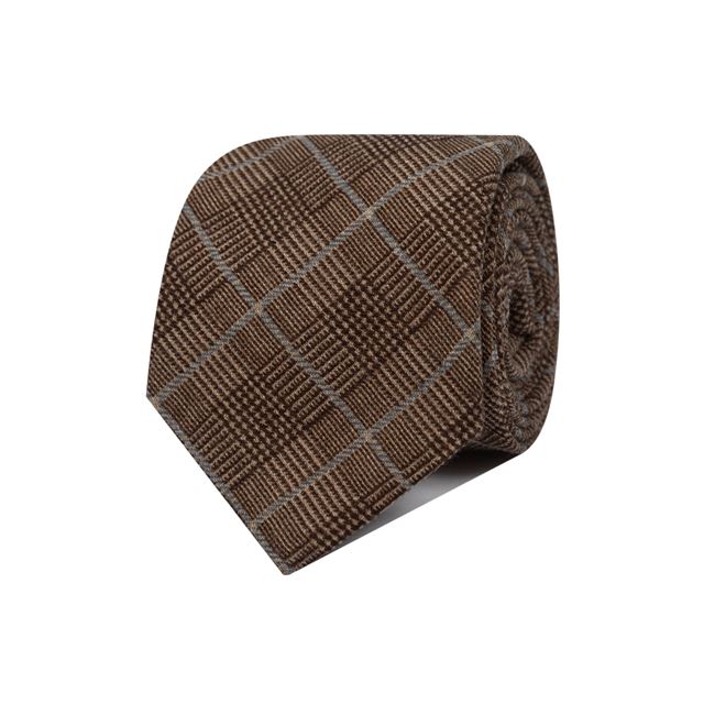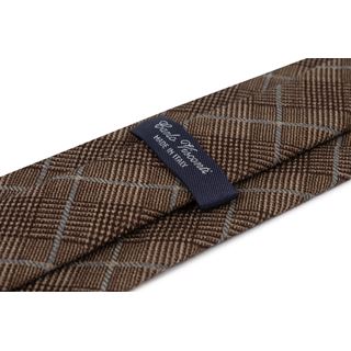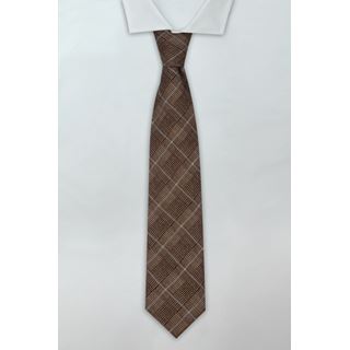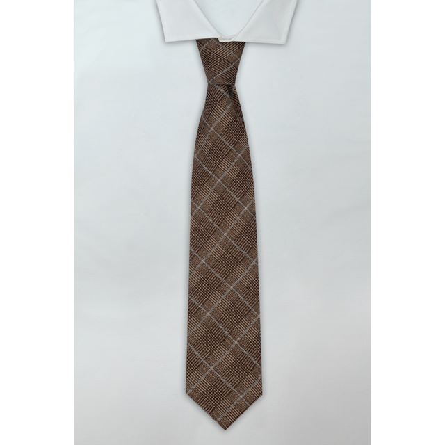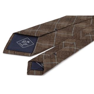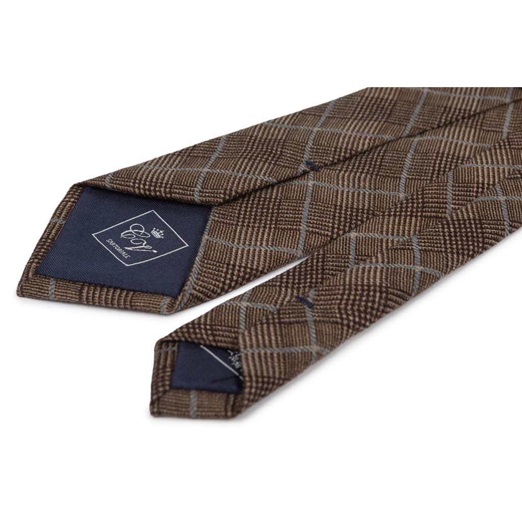 Corbata de lana con con diseño cuadros ventana en líneas azul sobre base de tonos marrón y beige