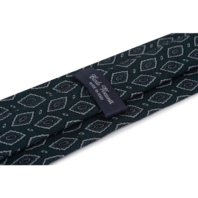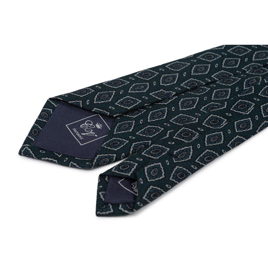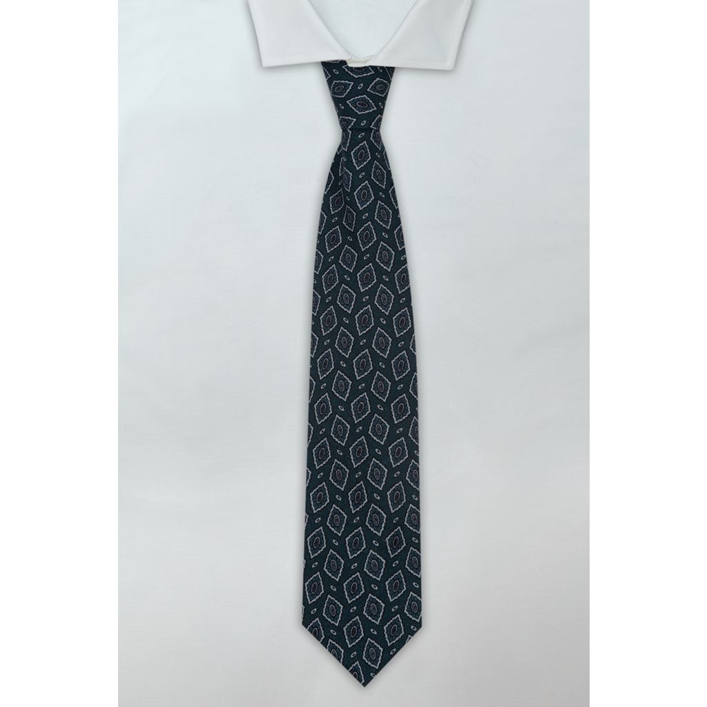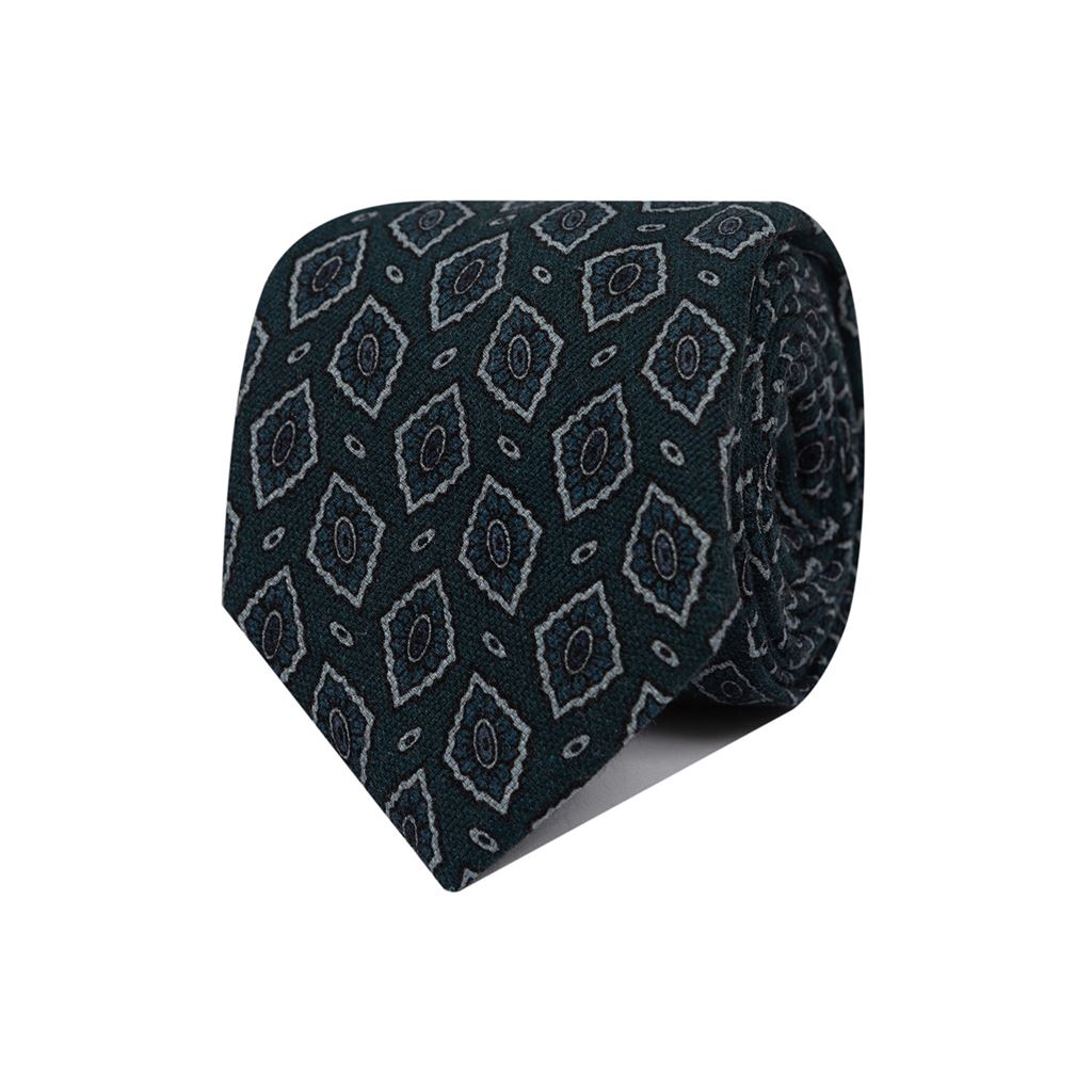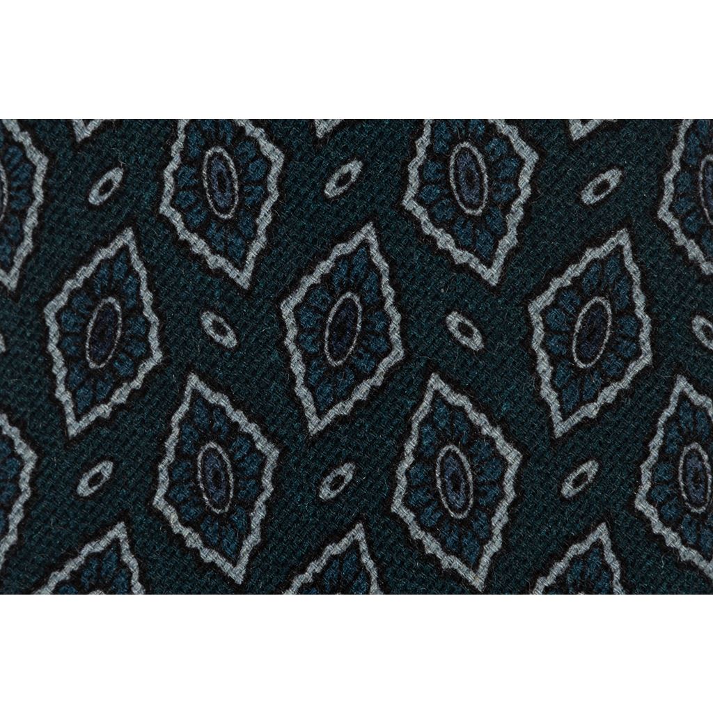 Corbata de lana verde petróleo con dibujo flor dentro de rombo