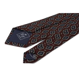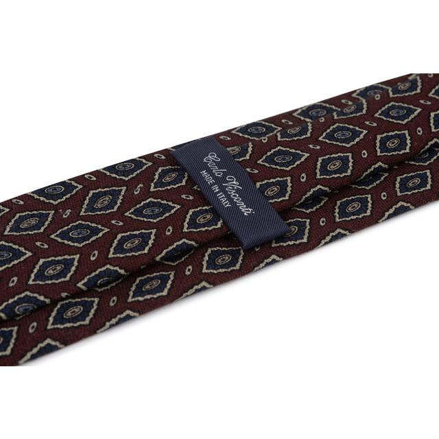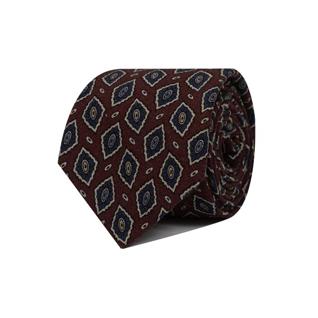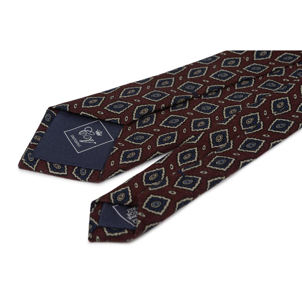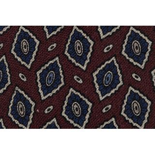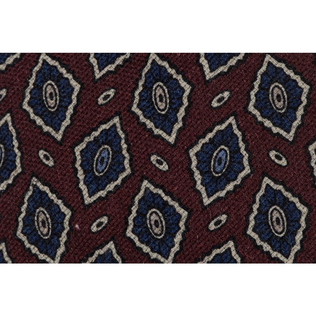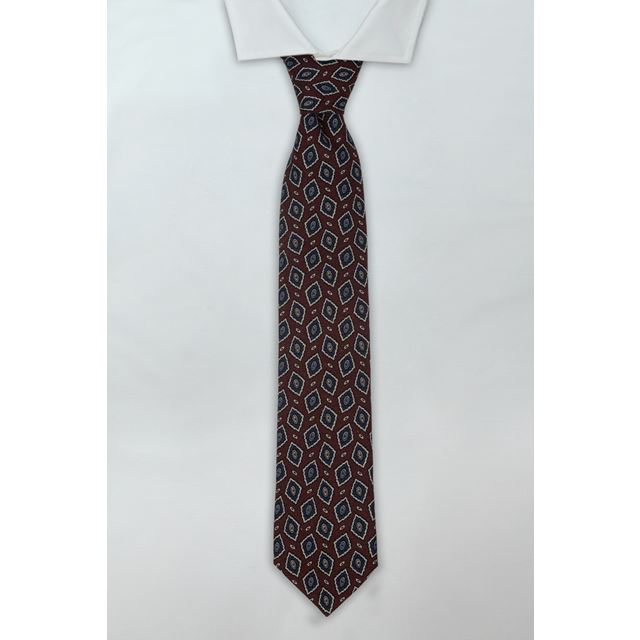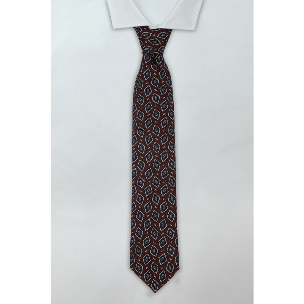 Corbata de lana burdeos con dibujo flor azul dentro de rombo