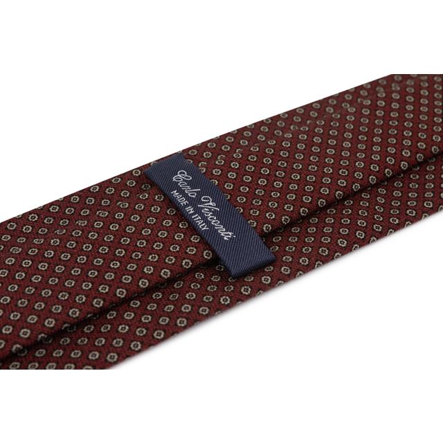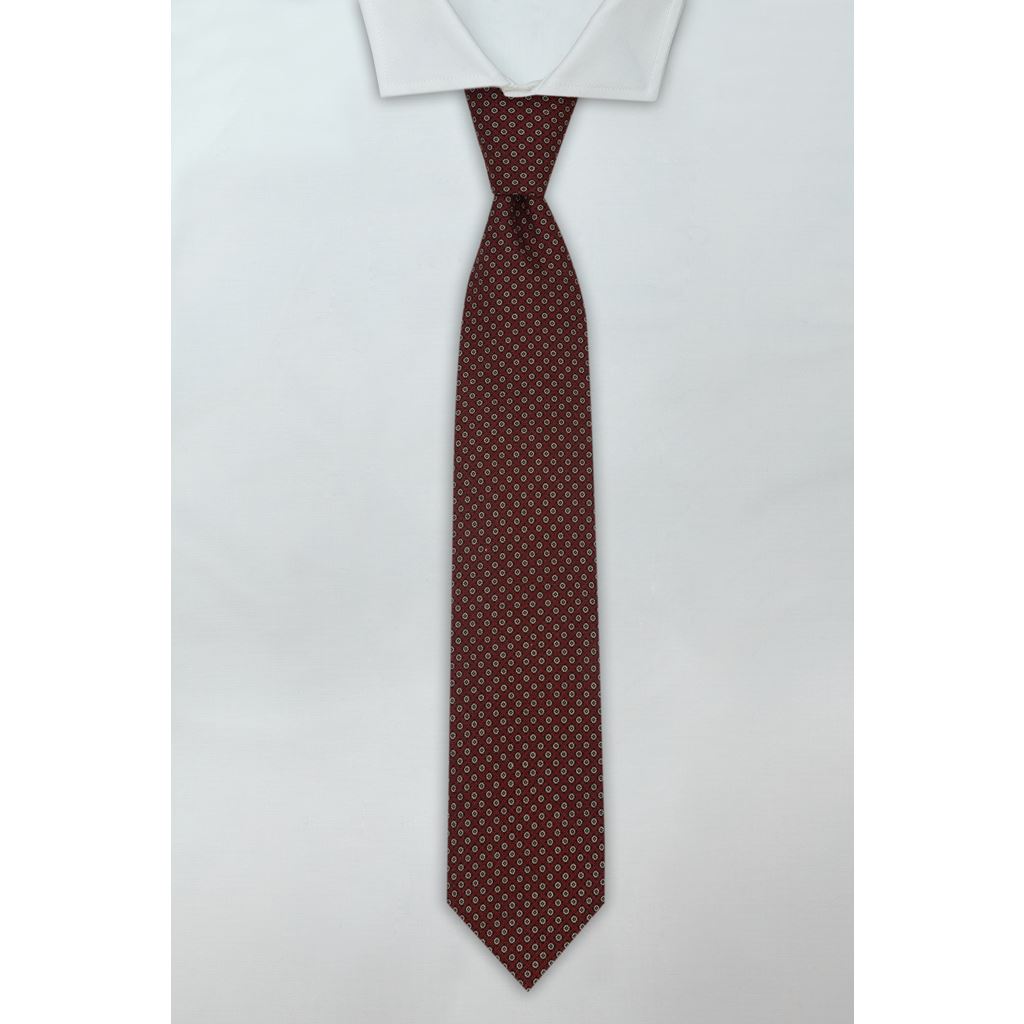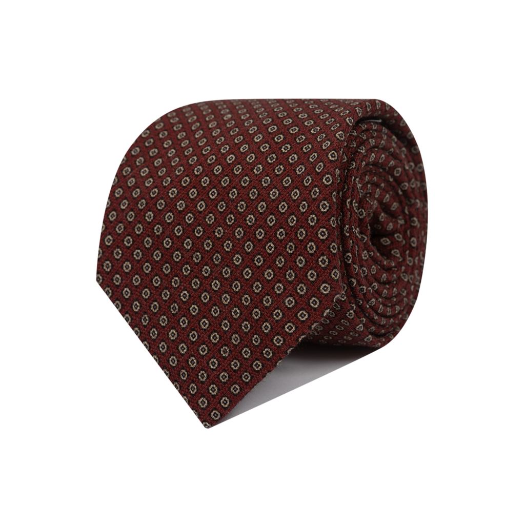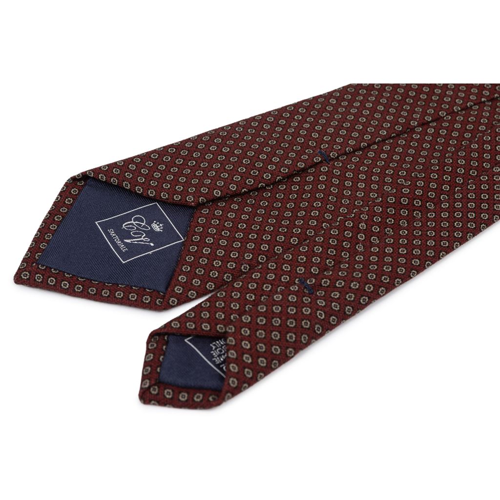Corbata de lana fondo burdeos con dibujo de margarita beige sobre fondo negro