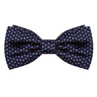 Diseño: fondo azul con rayas en amarillo y rojo.