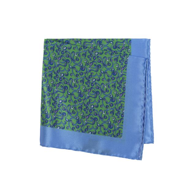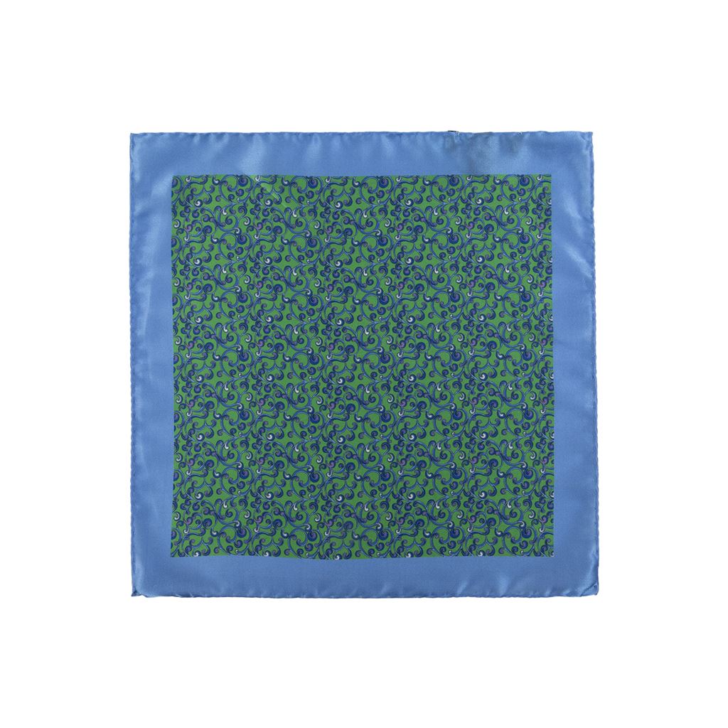 Pañuelo de bolsillo con diseño barroco y borde azul claro