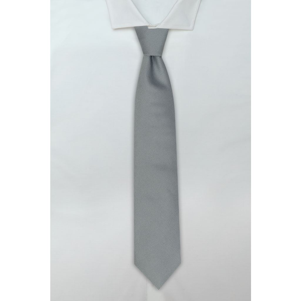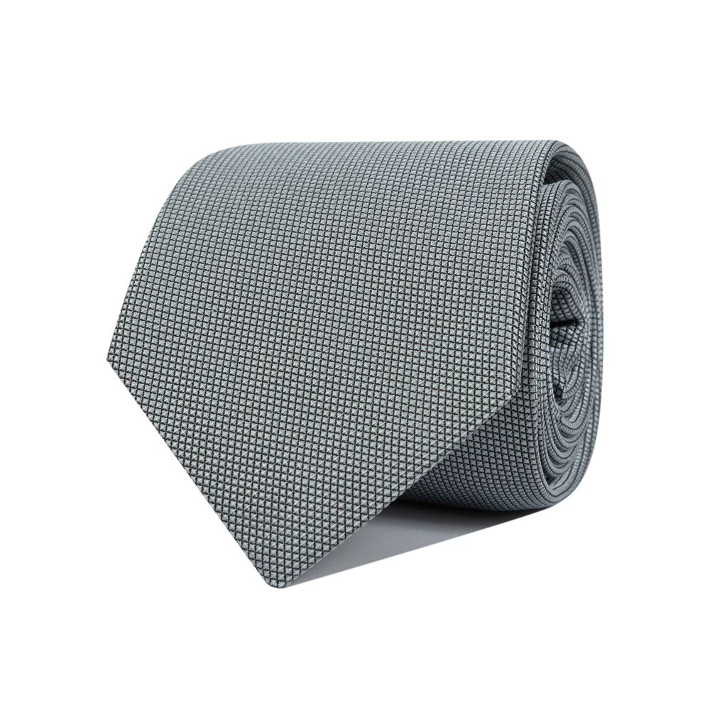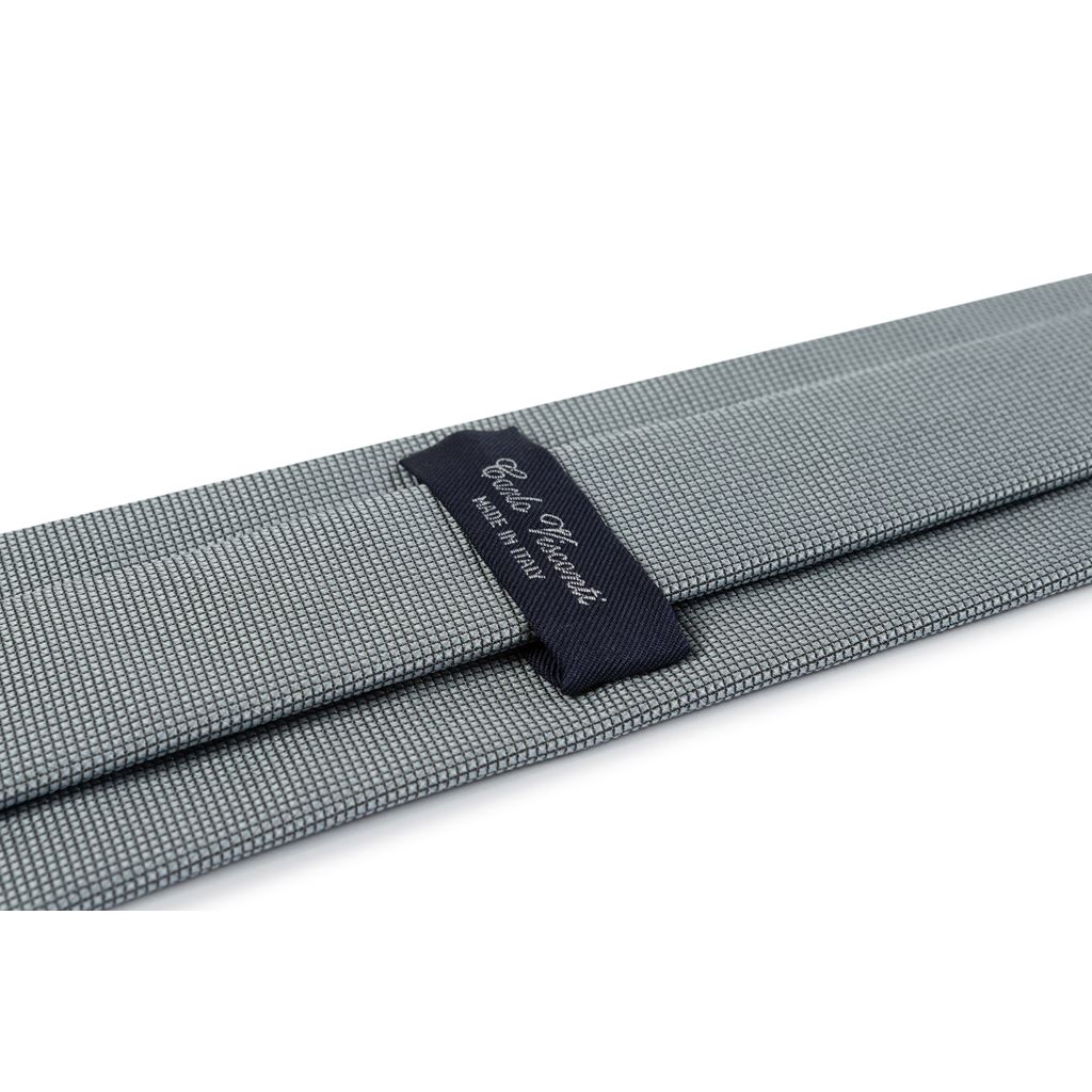 Cravatta in seta tinta unita grigia con tessitura